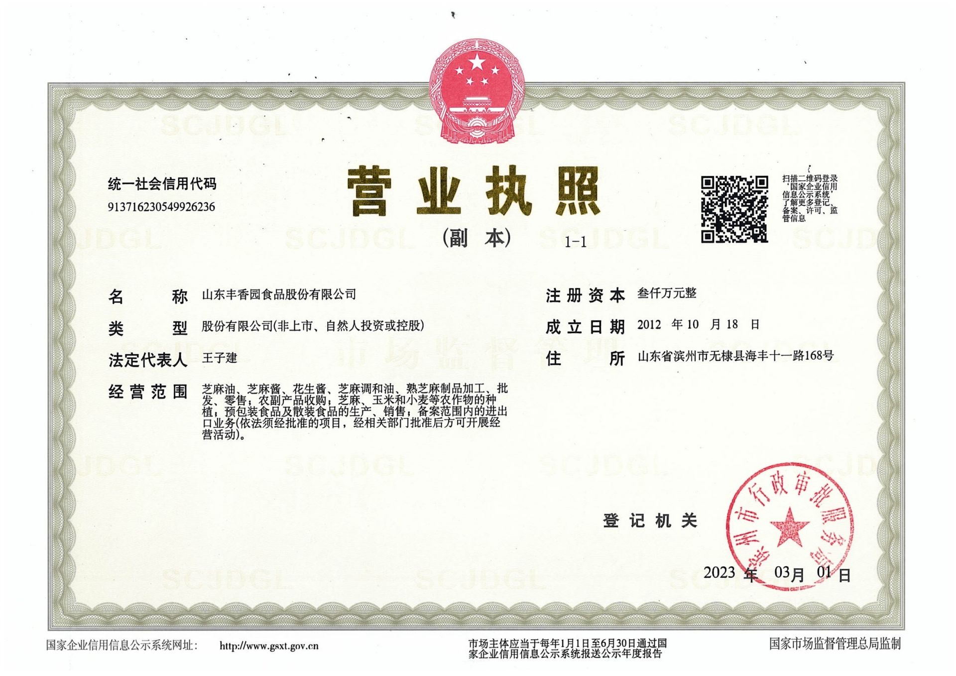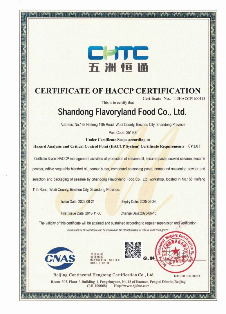 山東豐香園食品股份有限公司位于山東省濱州市無棣縣海豐十一路168號,公司擁有員工50多人,年銷售收入6000多萬元,是華北地區最大的純正芝麻香油、芝麻食品定制代加工生產、出口基地。 ? ? 豐香園小磨香油、芝麻調和油、花生醬、芝麻醬、混合醬、熟芝麻制品均已通過英國零售商協會BRC認證、歐盟 美國和國內有機、HACCP體系認證,是山東省出口食品備案企業。 ? ? 豐香園小磨香油、芝麻香油、芝麻醬以傳統石磨工藝精制而成,從原料進庫到成品出廠,經過12道工序嚴格檢測,確保了產品符合國家標準和出口標準,讓廣大消費者吃的放心,吃的營養,吃的健康,豐香園公司致力于打造中國純正芝麻香油、芝麻醬領導品牌。? ? 在歷史和未來之間,“豐香園”一直是純真香油的誠信領導者,豐香園芝麻食品公司用良心磨油,拒絕摻假,每一滴芝麻油都是純正的,被廣大消費者頌有“無棣特產黃金油”,“魯北瓊漿”的美譽。 ? ? 作為中國一家專業生產小磨芝麻香油、芝麻醬的現代化企業,豐香園芝麻香油秉承“真色、真味、真香”的三真級行業新標準,始終走在行業標準的前列。從芝麻采購、驗收檢測、生產、包裝、銷售,一體化產業鏈,真正做到無污染。? ? 豐香園芝麻食品定制代加工產品,已覆蓋山東、兩廣、京津唐、東北及華南地區,出口到日本、韓國、及東南亞等國家和地區。